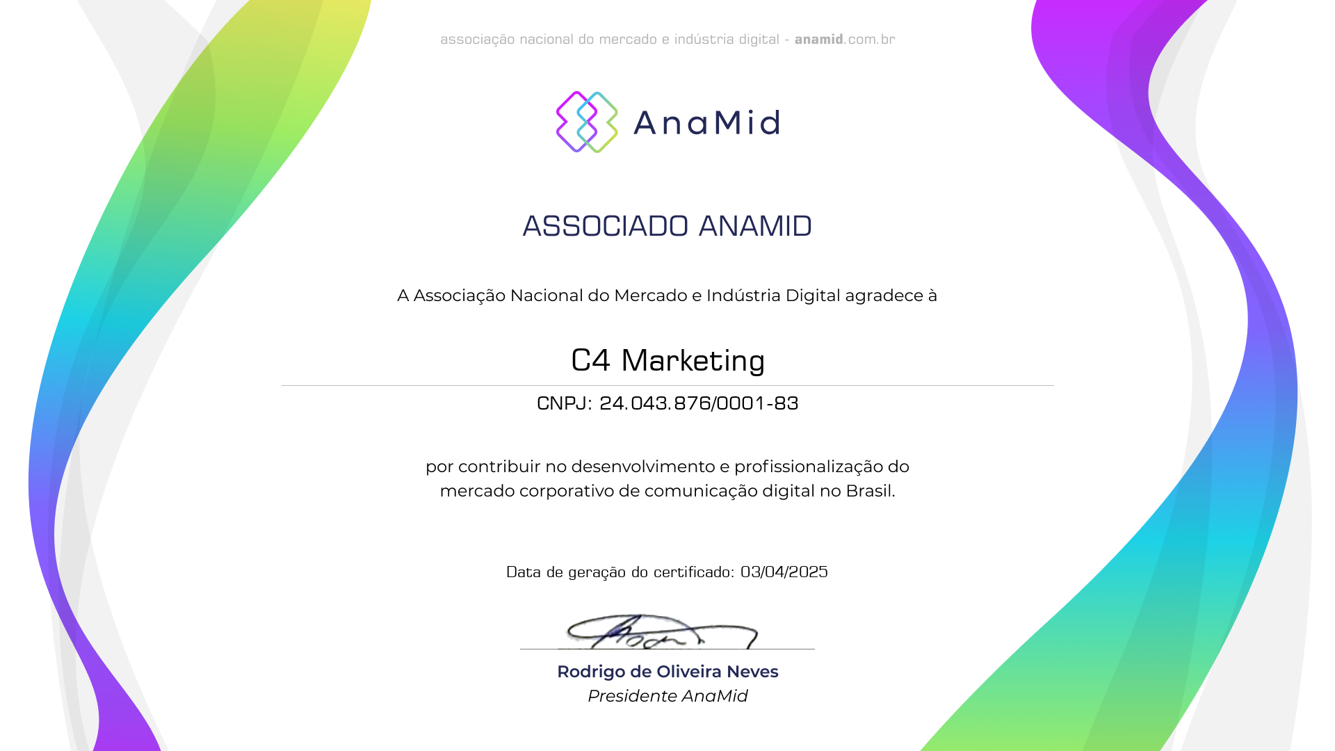 A C4 Marketing tem em seu DNA o compromisso com o cliente como centro de todas as ações (Customer Centricity). Por isso, oferecemos atendimento personalizado e contínuo por meio de grupos exclusivos no WhatsApp e check-ins semanais, assegurando proximidade e total alinhamento com as necessidades de cada cliente.